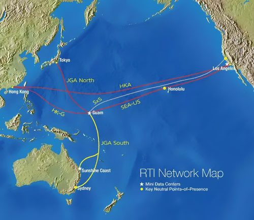 JGA South的初始規(guī)劃容量為36 Tbps,使悉尼的運(yùn)營(yíng)商中立數(shù)據(jù)中心可以銜接到坐落關(guān)島Piti的RTI電纜登陸站/中立數(shù)據(jù)中心。從關(guān)島,JGA South與中立數(shù)據(jù)中心無(wú)縫銜接,包含洛杉磯,加利福尼亞,美國(guó),日本東京和香港特區(qū)等。不僅如此,JGA South還將銜接昆士蘭州的陽(yáng)光海岸,成為有史以來(lái)第一條登陸悉尼以外的澳大利亞?wèn)|海岸的新電纜。